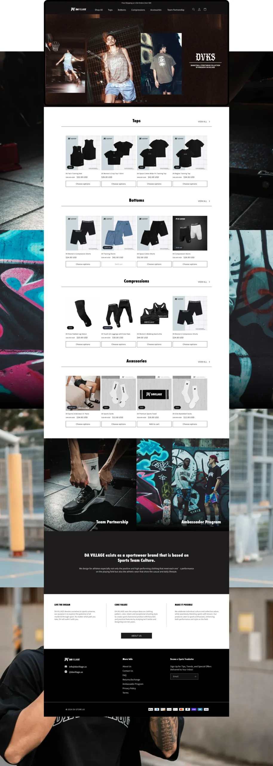 Da Village is a sportswear brand inspired by team culture, offering performance-driven apparel that seamlessly blends style, functionality, and everyday versatility. Seeking to elevate their online presence and enhance user engagement, Da Village approached SparksGlo to create a completely new shopping experience that embodies their brand spirit.